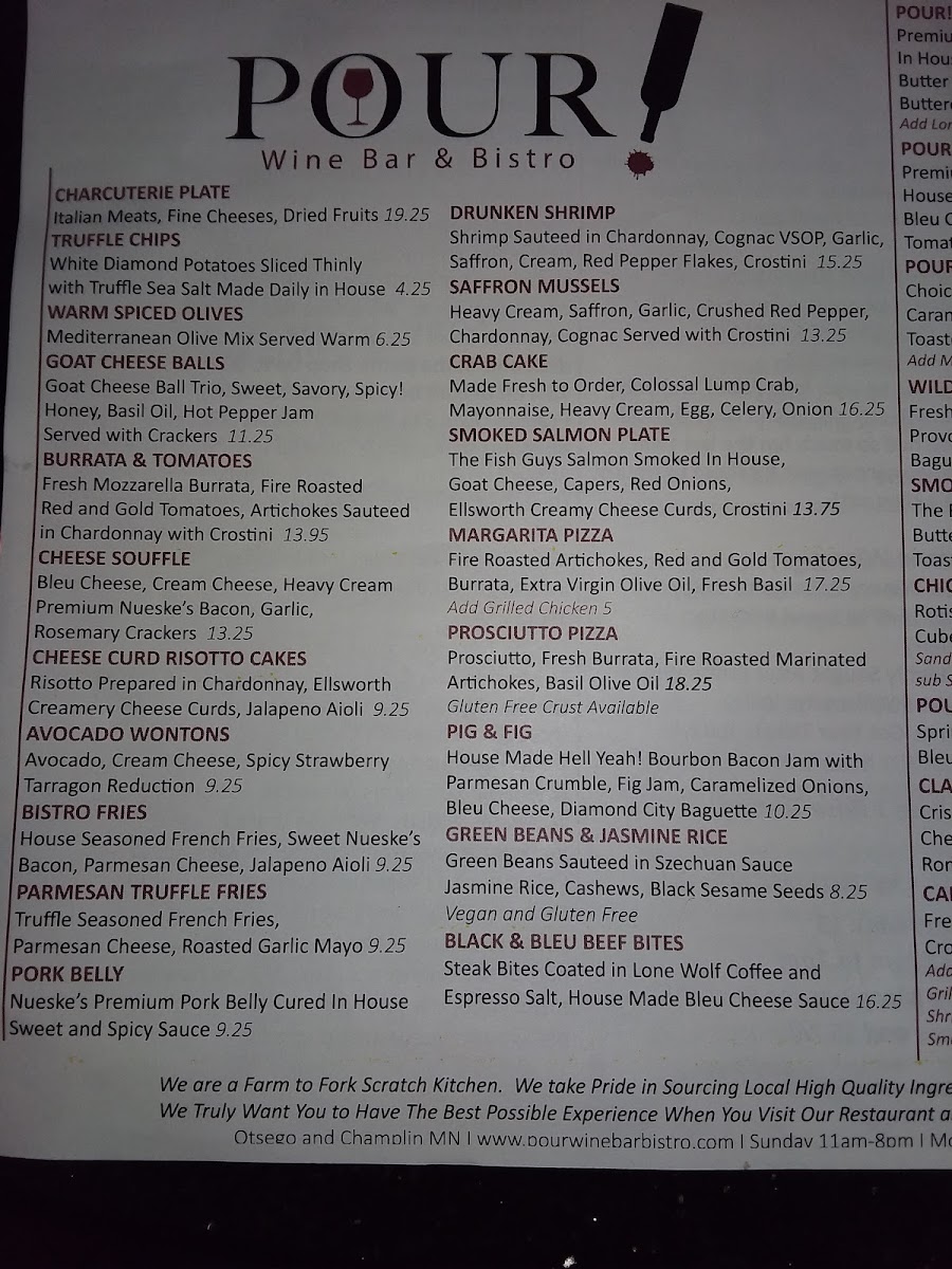 Welcome to Pour Wine Bar & Bistro, a delightful eatery nestled in Champlin, MN. Situated at 12379 Champlin Dr, this charming establishment offers a menu that tantalizes the palate while enhancing the dining experience with the perfect wine pairings.